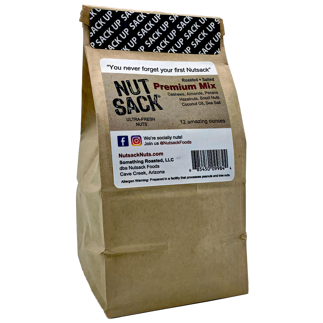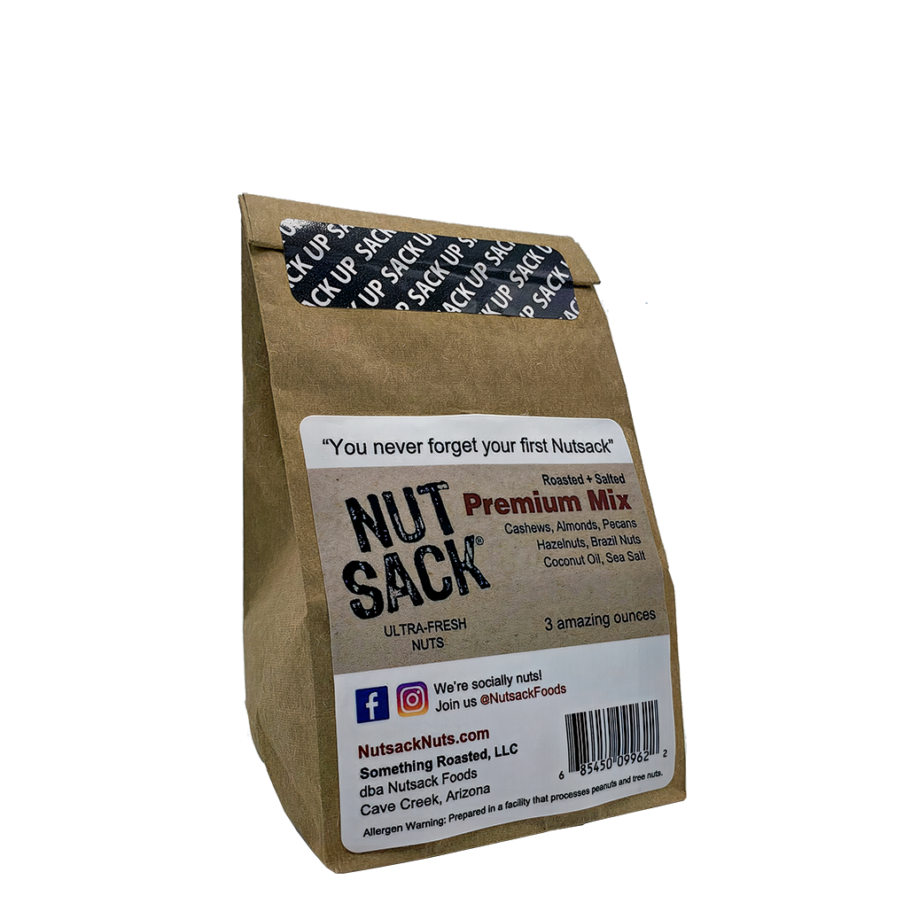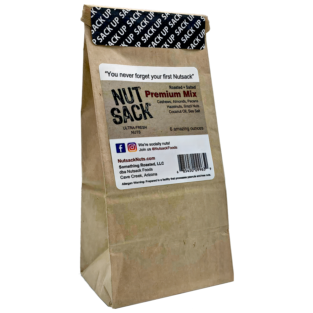 Our Premium Mix Nutsack is the mix that started it all! Sink your teeth into this amazing mix of five ultra-fresh and flavorful nuts. All of our nuts are roasted with 100% pure and healthy Coconut Oil then perfectly salted with sea salt.