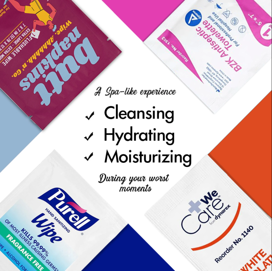 Treat yourself to a spa-like experience when nature unexpectedly calls. The CODE BROWN Bag is a pocket-sized hygiene kit for on-the-go bathroom emergencies and cleanup. The kit includes 3 Butt Napkins, 2 Antiseptic Cleansing Towelettes, 1 Hand Sanitizing Wipe, 1 Anti-Chafing Ointment, and 1 Disposable Bag.