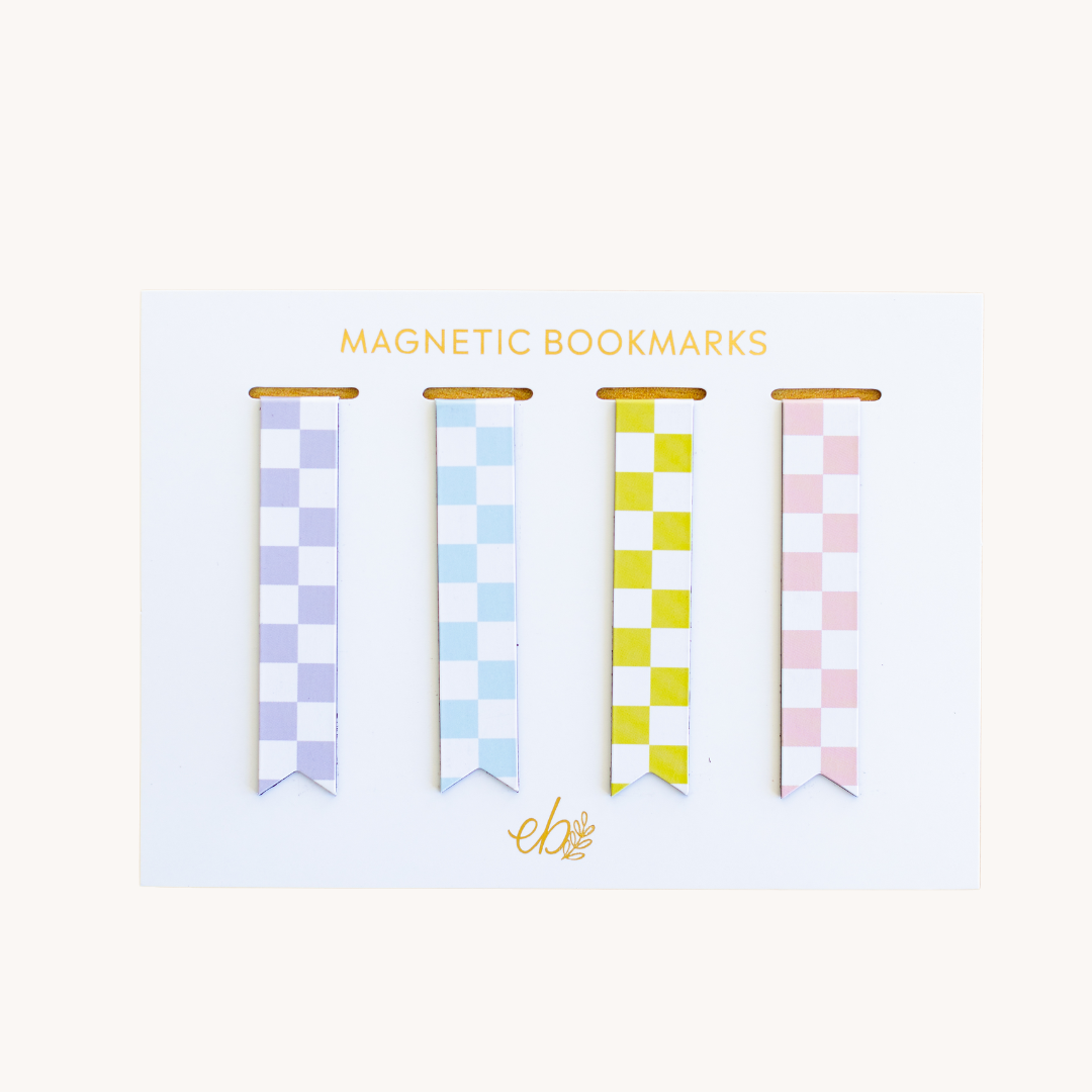 - Set of 4 magnetic bookmarks - 2mm magnet - 2.75x0.5" folded . All designs and products images are ©Elyse Breanne Design LLC.